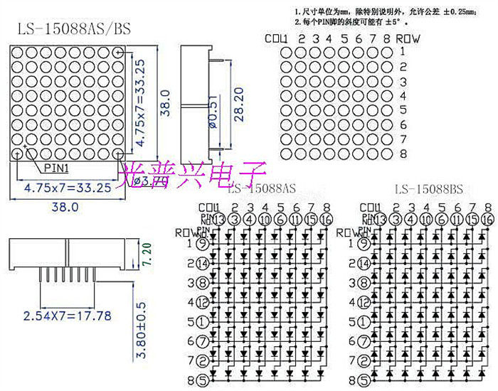 Digital tube LED dot matrix module 3 75mm 8*8 1588AG 1588BG Bright green