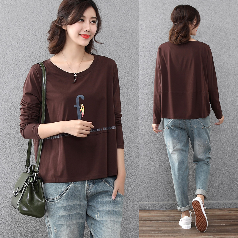 Share life 2020 Chunqiu pure cotton letter printed round collar short T-shirt woman 100 lap casual long sleeve inner lap