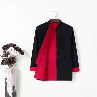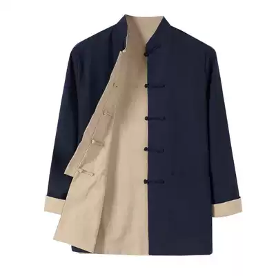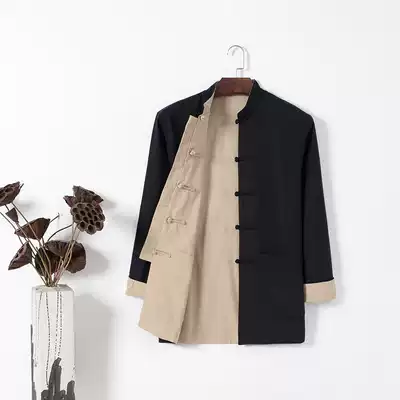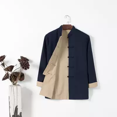 Chinese stand-up collar men's Tang suit young men's Chinese style linen spring and autumn cotton and linen long-sleeved retro casual disc buckle jacket