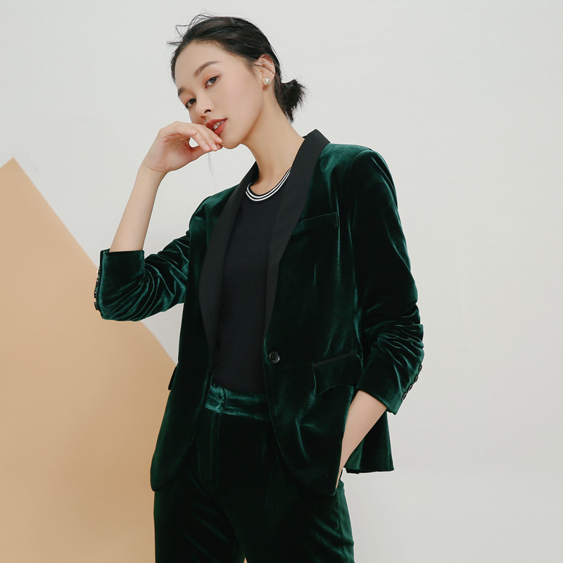Gold velvet suit 2020 autumn new velvet suit slimming slim all-match velvet small suit jacket women