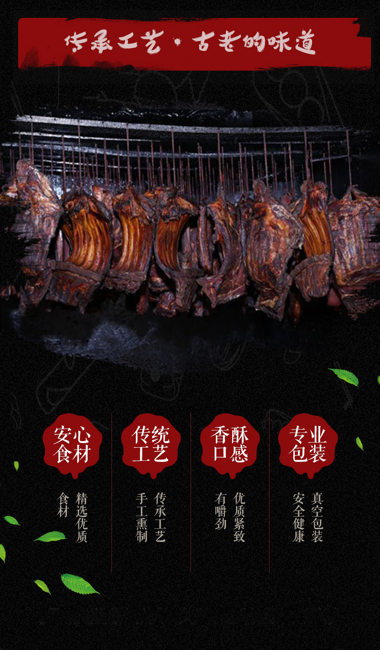 Guizhou taste without large bones Smoked cured pork ribs Zunyi Tor salted pork salted pork ribs Pulp Pork 250g