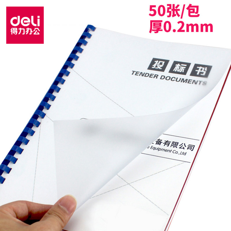 Deli 3820 binding negatives PVC tender glued plastic cover a4 transparent perforated nail cover cover book cover cover comb clip strip apron binding machine special 50-sheet bag