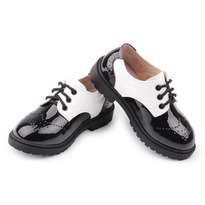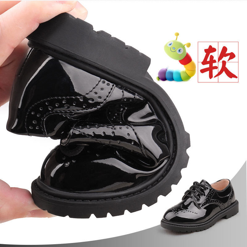 Boys black leather shoes soft bottom 2017 new children's English style children's performance leather shoes flower girl leather shoes