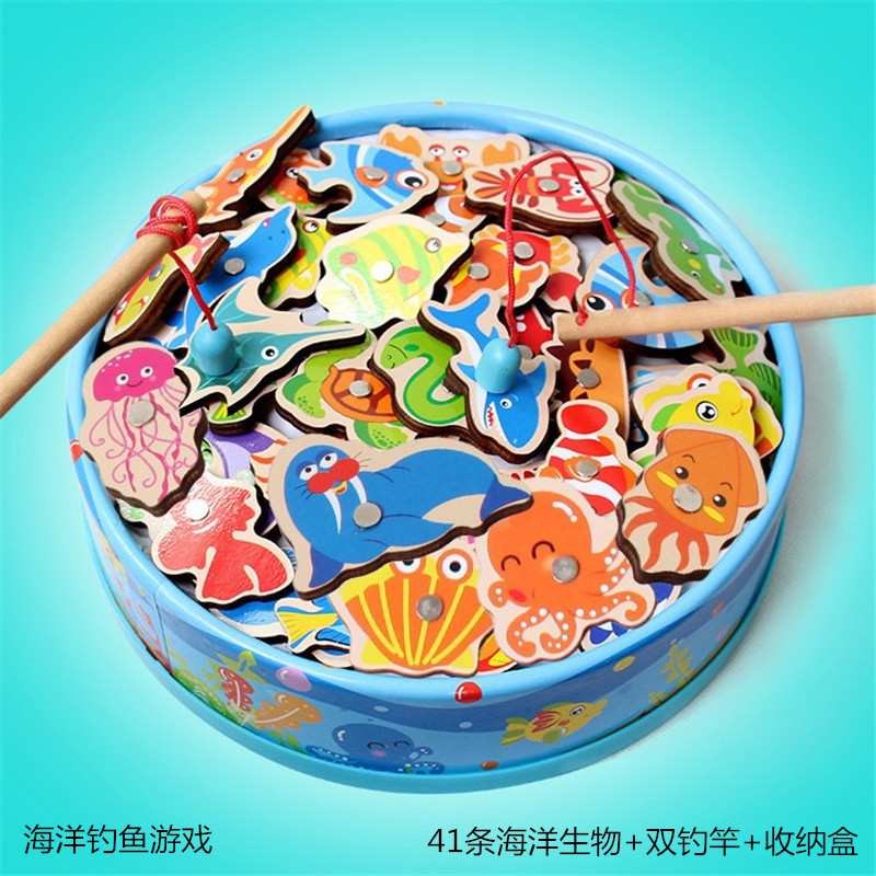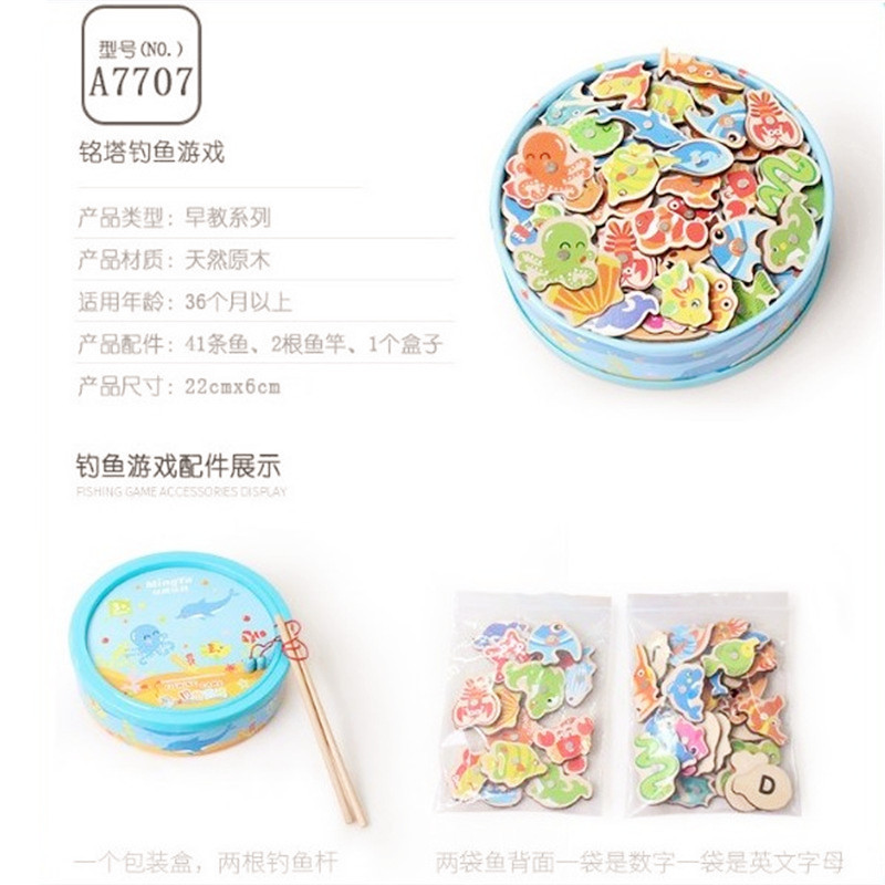 Mingta fishing game Children's toy Magnetic wood kindergarten baby boy girl Girl Children's Day gift