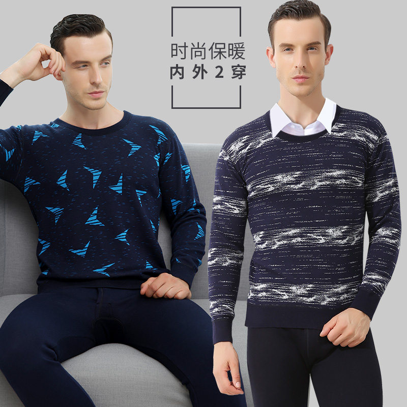 (Pre-sale)Hengyuan Xiang thickened and velvet fever clothes men's suit crew neck printing youth autumn clothes sanitary pants winter