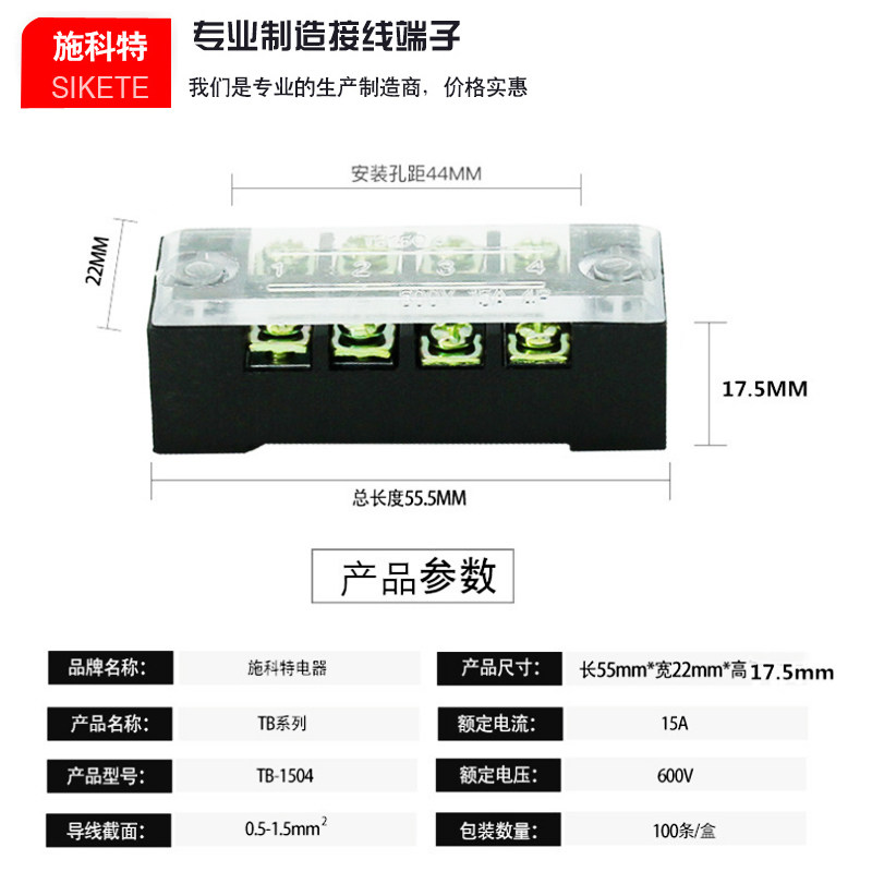 Pure copper TB1504 stationary wiring terminal terminals row wiring boards 15A 4 bits