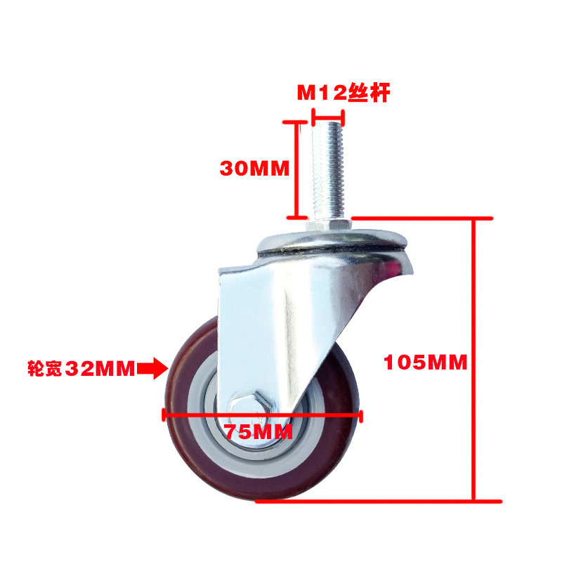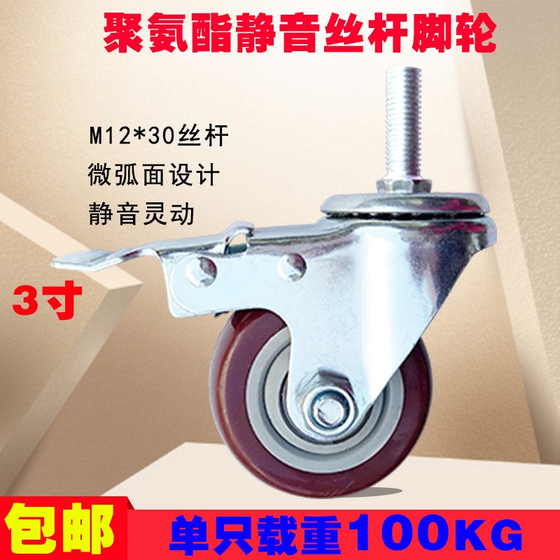 3-inch 4-inch M12 wire rod universal wheel brake mute heavy castors screwed wheel screw teeth bearing wheel shelving wheel