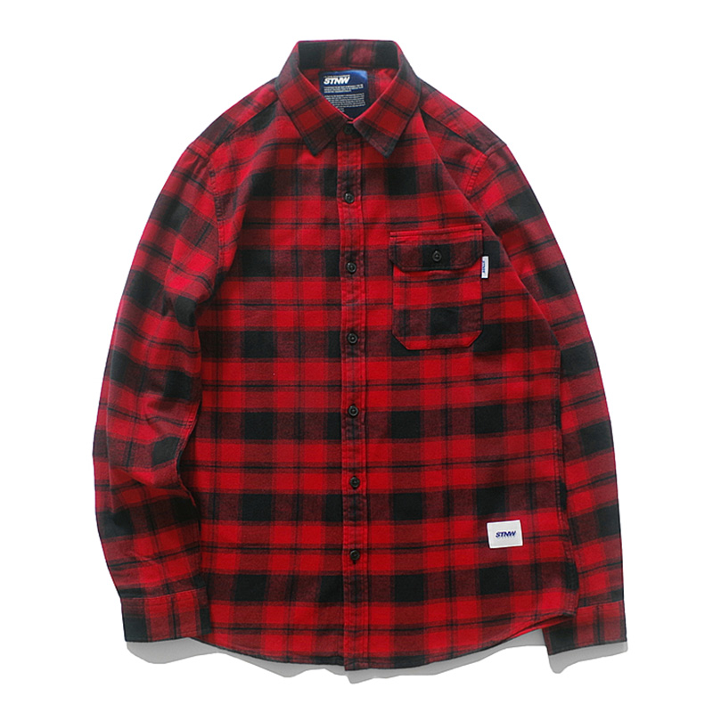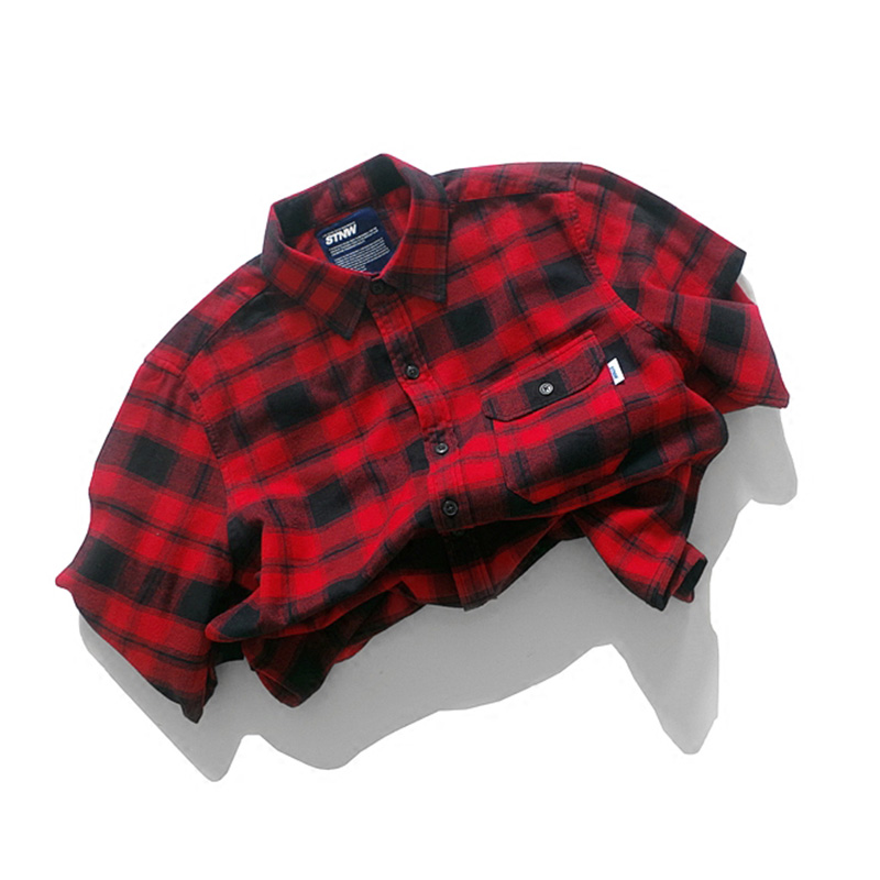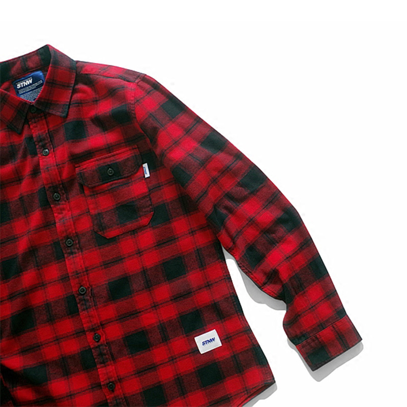SOMETHNEW Guochao STNW Original Tide Card College Style Submen Casual Long Sleeve Red Grunge Shirt Man