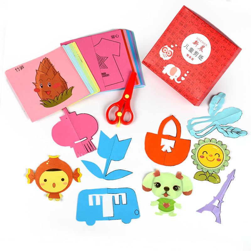Color print 96 Zhang sent 1 Scissors Line Manuscript 120 Zhang sent 1 Scissors Color Print Line Manuscript Total 240 sheets of 2 Scissors Diy Painted cut paper 192 sheets SENT WAX PEN SCISSORS 13 cm 10 COLOR