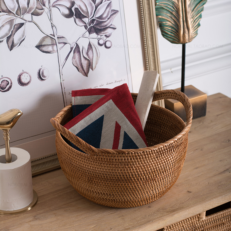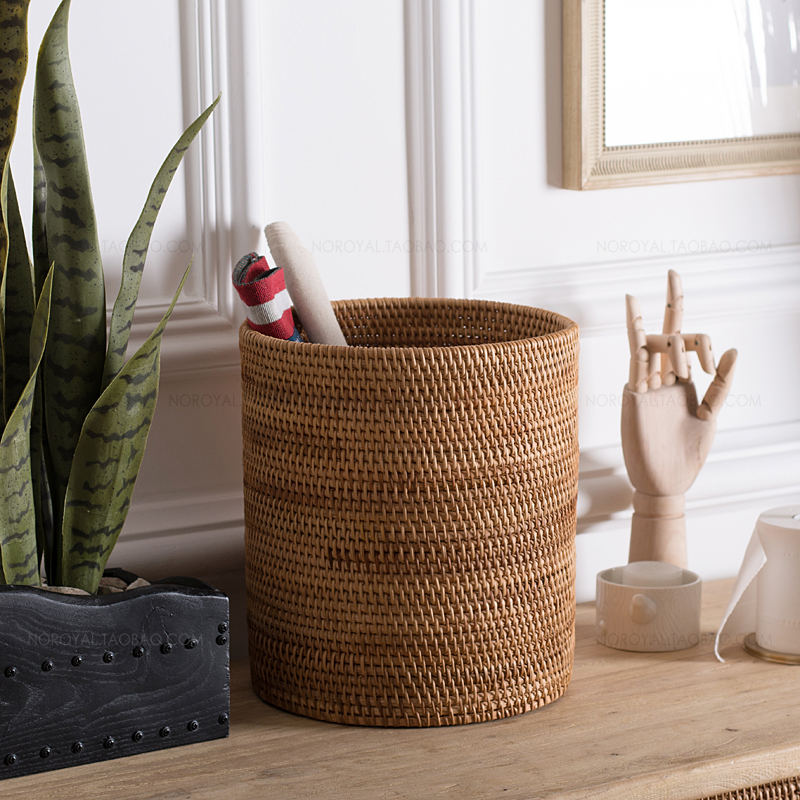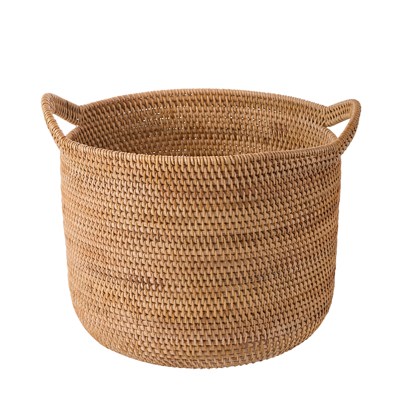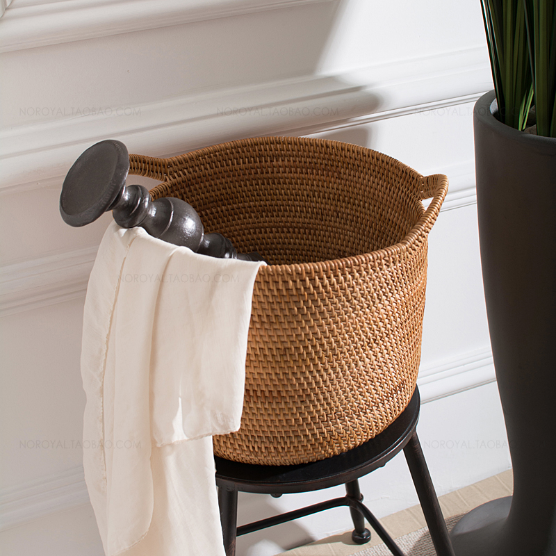Retro rattan basket high-grade wooden hand-woven laundry basket large barrel-shaped toy storage box laundry basket