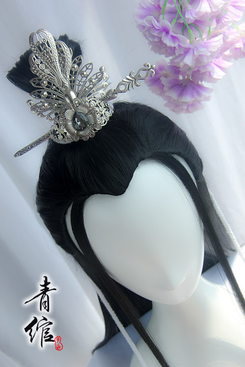 Ancient style COS costume film and television night Huahan uniform black universal beauty tip shape wig headgear male hair bun one
