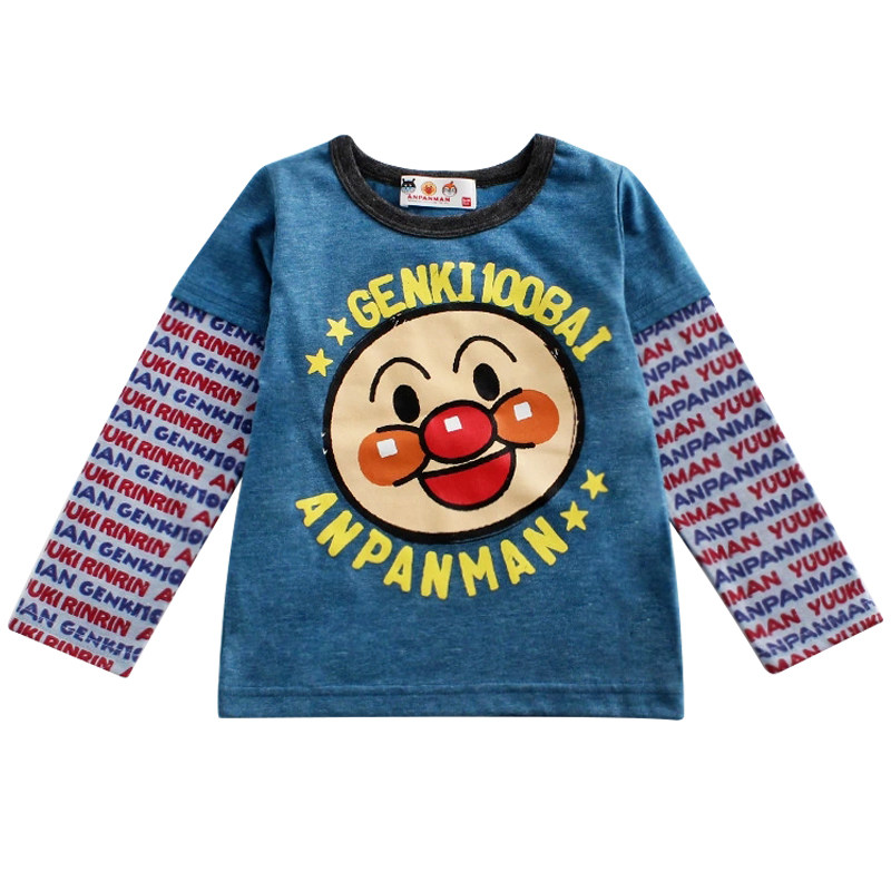 : Bread Superhuman Warriors Spring Autumn Season Children's Smiling Faces Long Sleeve T-shirt With Children Stripes Splicing Round Collar Blouses