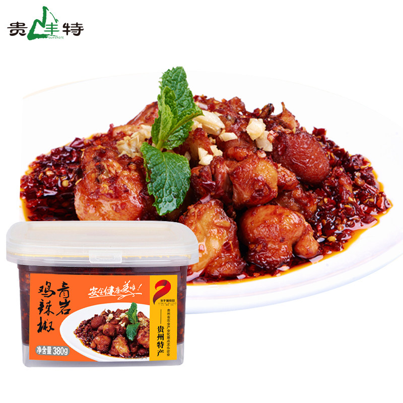 Guizhou special production of green rock chicken chili pepper Guiyang oil splasher chicken oil chili peppers Next meal Countryside Girl 380g * 1 box