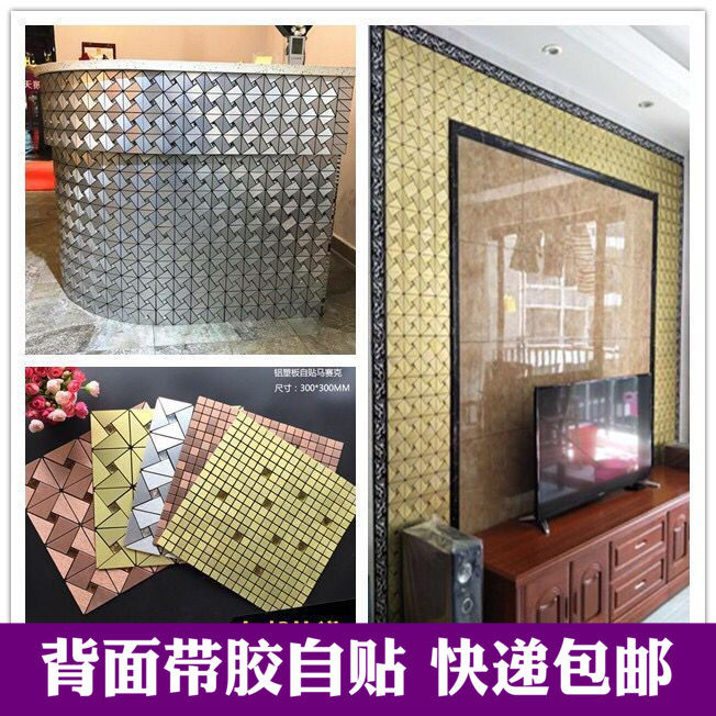 Metal aluminum-plastic panel mosaic tile bar self-adhesive drawing glass mosaic TV background wall stickers