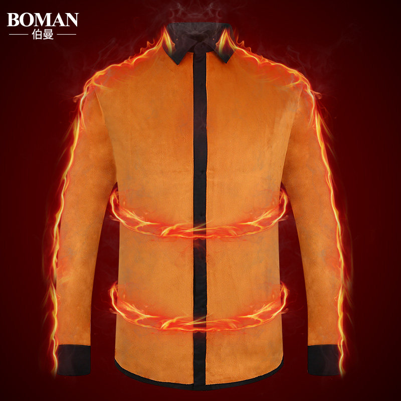 2019 Winter Men Warm White Shirt Body Business Dress Pure Blue Long Sleeve Plus Suede Thickened Shirt