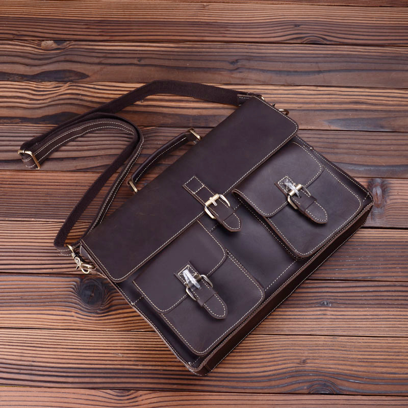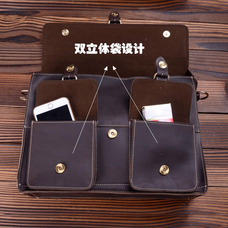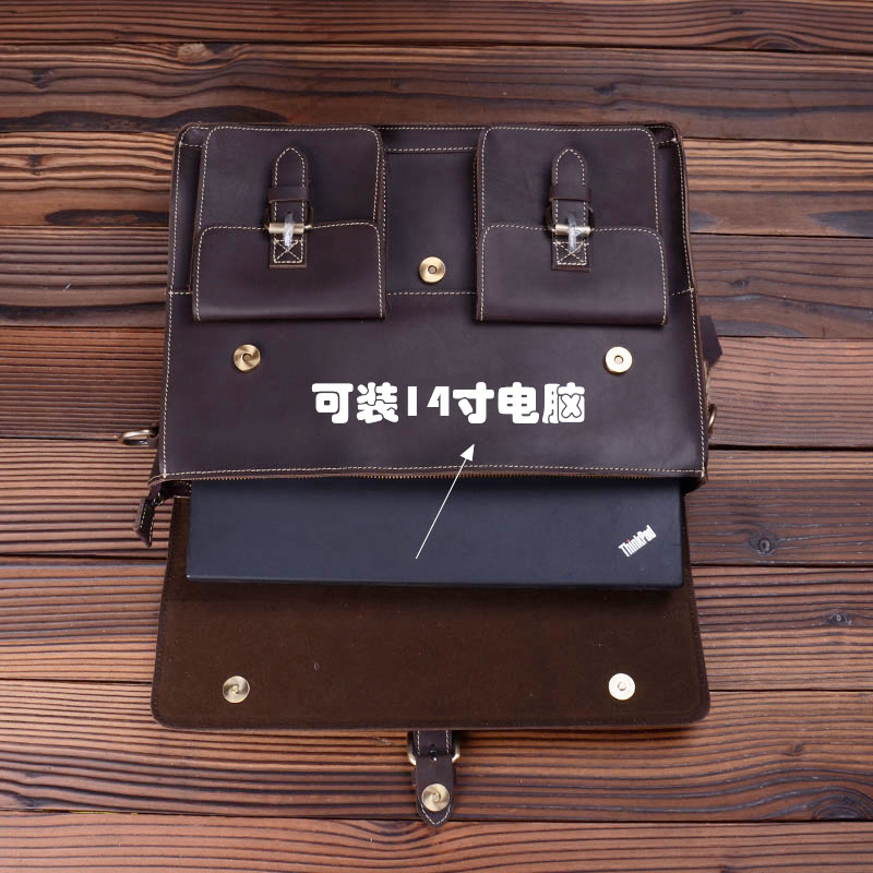 Genuine leather men's bag retro handmade one-shoulder messenger bag first layer cowhide diagonal bag casual portable briefcase computer bag