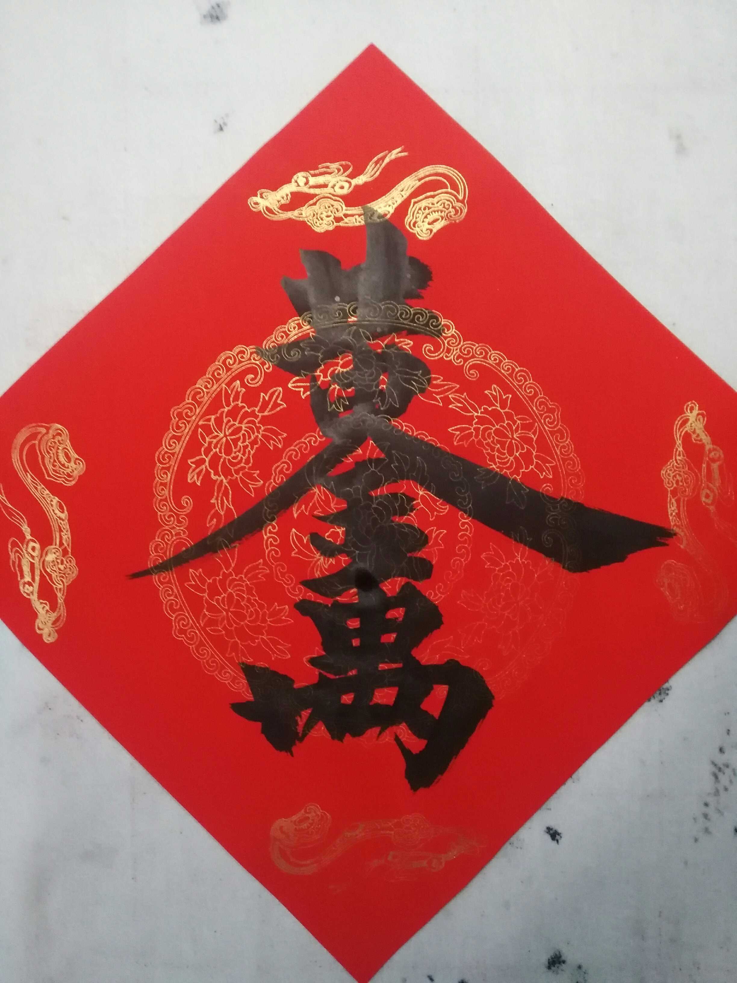Handwritten custom door amplitude square bullfighter character gold Wanshan Two-five-five-Mountain People's pro-writing calligraphy and calligraphy true-miraculously red spring couplets