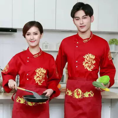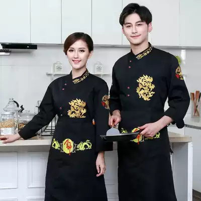 Chef overalls long-sleeved hotel kitchen chef clothes catering autumn and winter clothes Black embroidered dragon canteen chef clothes male