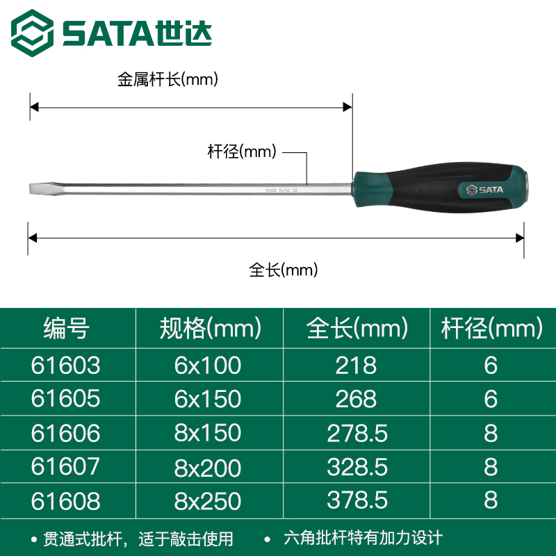 Shida through the heart screwdriver word cross super hard screwdriver Industrial grade large screwdriver large extension can be struck