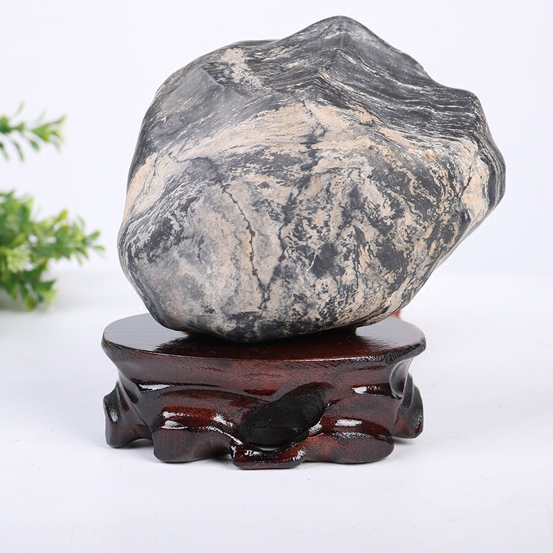 Flawless product handling small number of jade stone base stone base Round Flower Pot with stone wood Wooden Seat