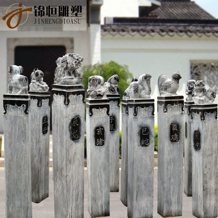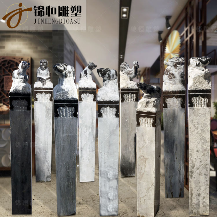 Stone Sculpture Tethered Horse Pile Zodiac Zodiac Imitation Ancient Make Old Hotel Courtyard's Courtyard House of Feng Shui Swing Adorned the Qingshi Chained Horse column