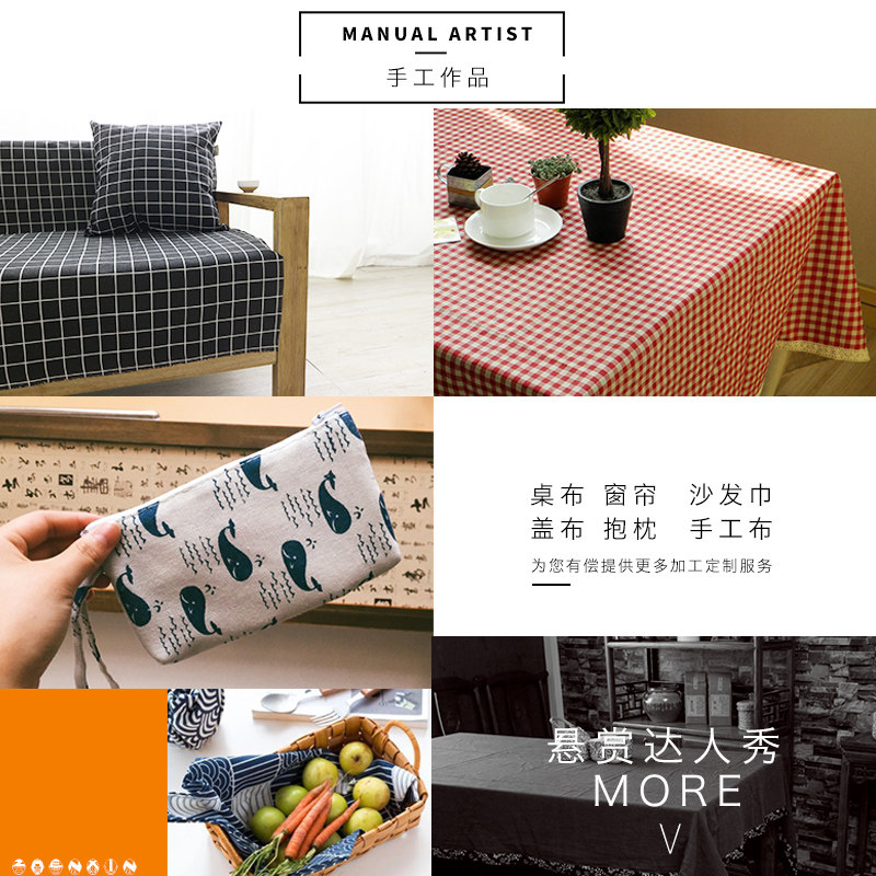White big grid navy blue sea wave navy blue small wave big fish scale Russian wind pattern black big grid leaf shadow swaying gray big grid cotton linen defective cloth head random hair (90X140cm