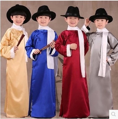 Young children's cross talk costumes boys boys children Republic of China long coats coats Chinese robes horse coats performance costumes