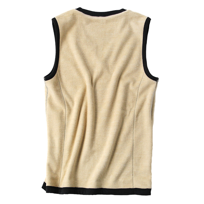 Chamiautumn winter new real silk plus suede thickened warm vest men V collar pure color elastic silk not down velvet