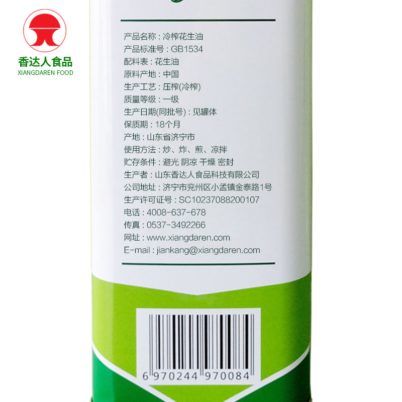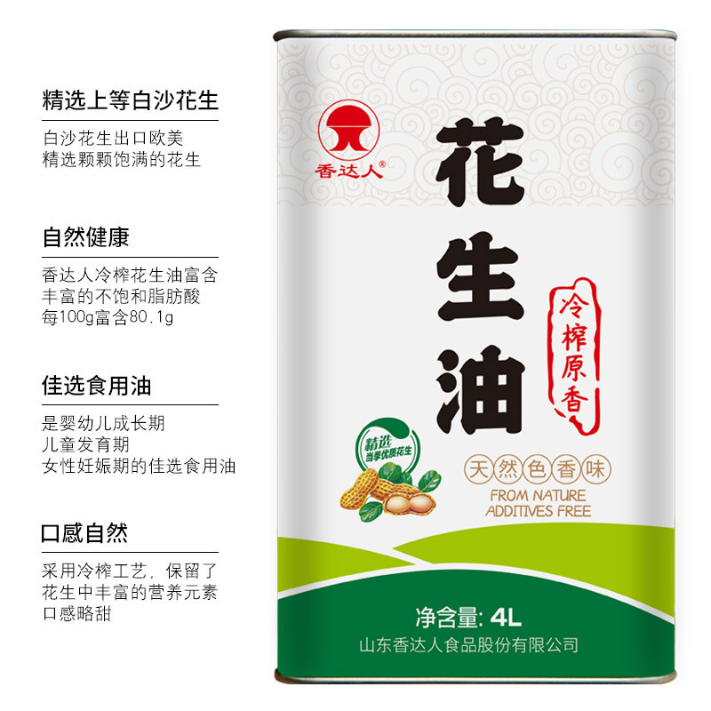 Cold pressed natural original fragrant peanut oil Physics 1st grade press no-add heating fried cooking oil 4L horse mouth iron canned