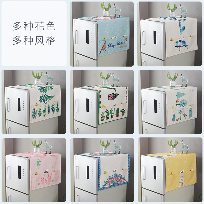 Refrigerator anti-dust cover cloth double door open single door dust cover drum washing machine cover towel cotton hemp cloth art modern minima-Taobao