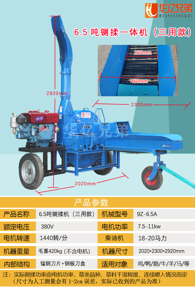6 5 ton Three-use Twin Box Hay Cutter Machine Single Machine 6 5 ton Triple use of Twin Box Hay Hay Kneading Machine Single Machine 11KW Motor Rear Drive Shaft 1 Area Different Shipping Costs Different 1 Knife Price