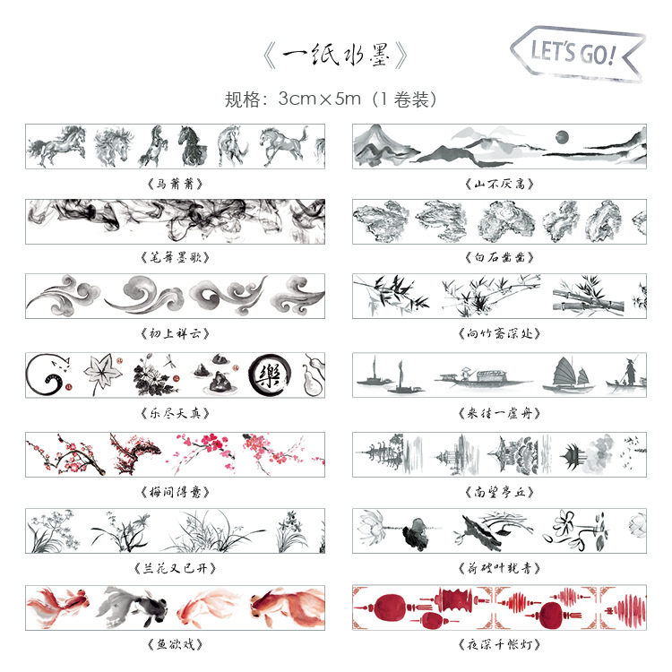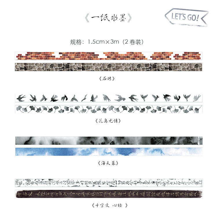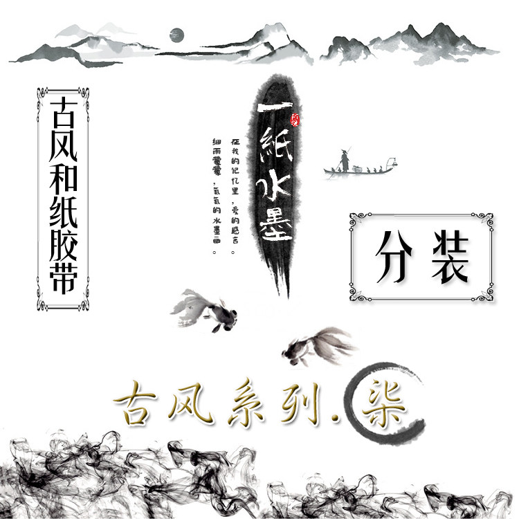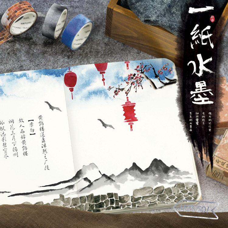 Mojing and paper tape A paper ink Chinese ancient style Danqing landscape small scene poetic hand account decorative material