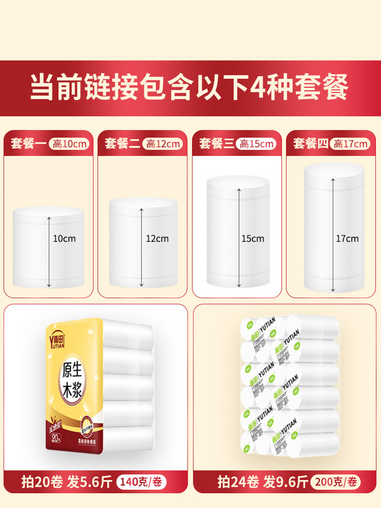 Yutian 15cm medium and long roll paper toilet paper household circle paper affordable toilet circle paper whole box paper towel toilet paper