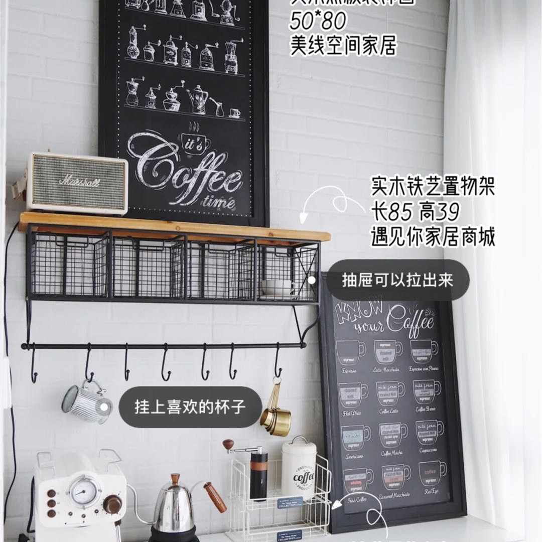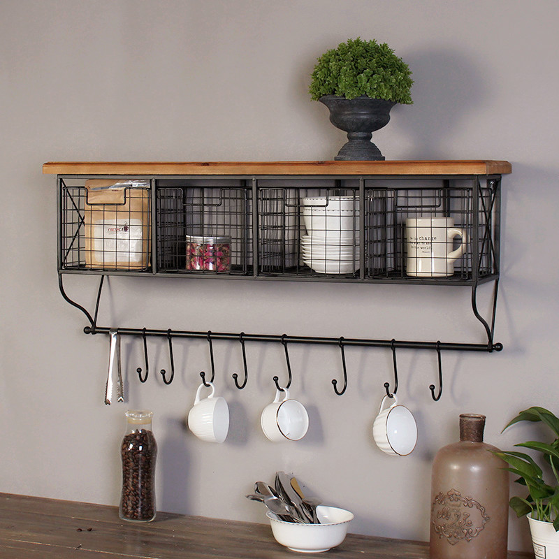 Retro Industrial Wind Grid Wall Decoration Shelve Hook Coffee Hall Office Home Wall American Hangings