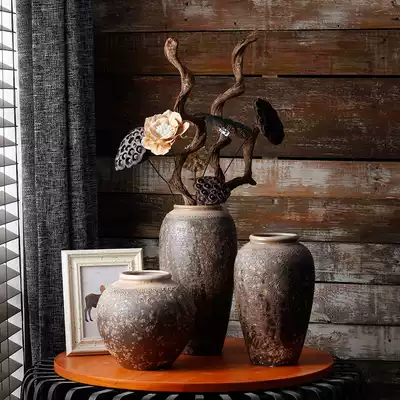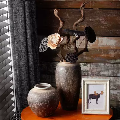 Coarse pottery ceramic countertop dry flower vase Jingdezhen handmade flower decoration retro simulation flower decoration decoration