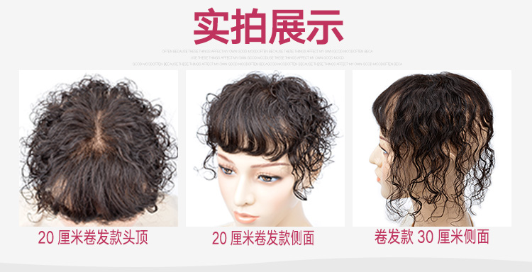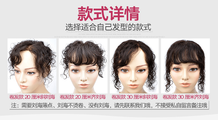 Real hair long slant bangs reissue block curly hair top cover white hair increase hair volume light and breathable Liu Hai film