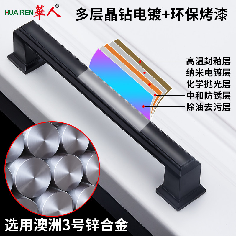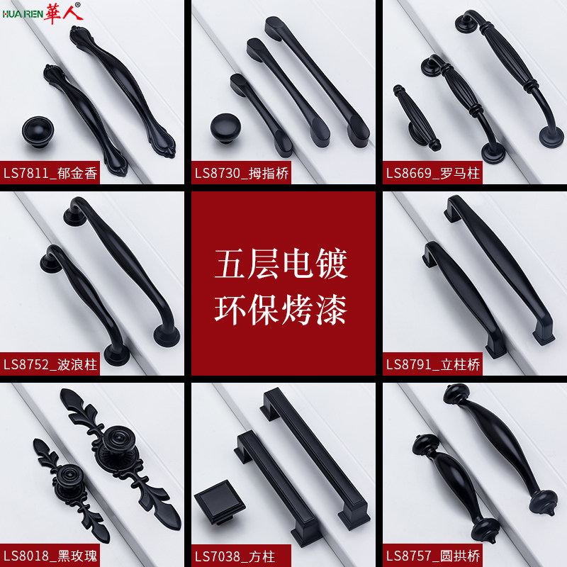 Chinese American American black overall cupboard door handle drawer invisible dark handle modern minimalist L' Oro-style wardrobe Single-hole
