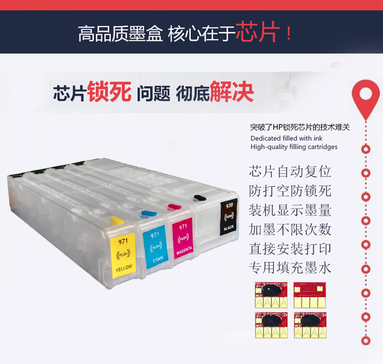 Suitable for HP 451 551 476 576 printers Compatible with HP970 971 refill continuous ink supply system cartridge chip