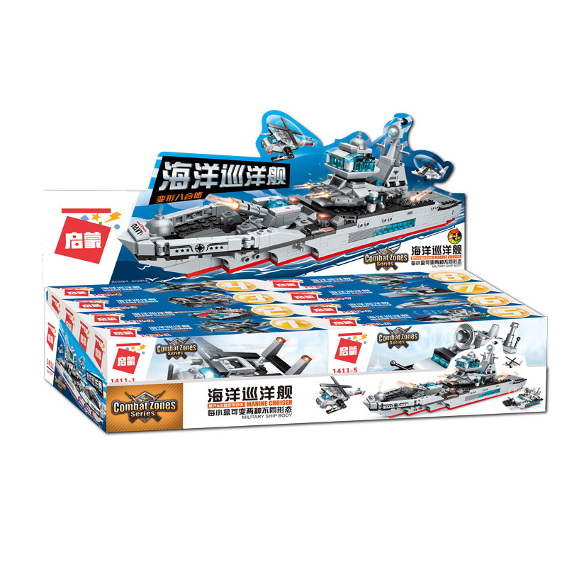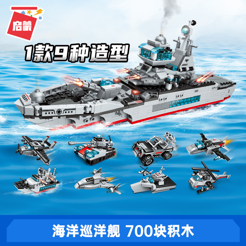 Enlightenment Lego building blocks assembled aircraft carrier battleship 8 in 1 ship children's educational toys 6 years old 8 boy gift