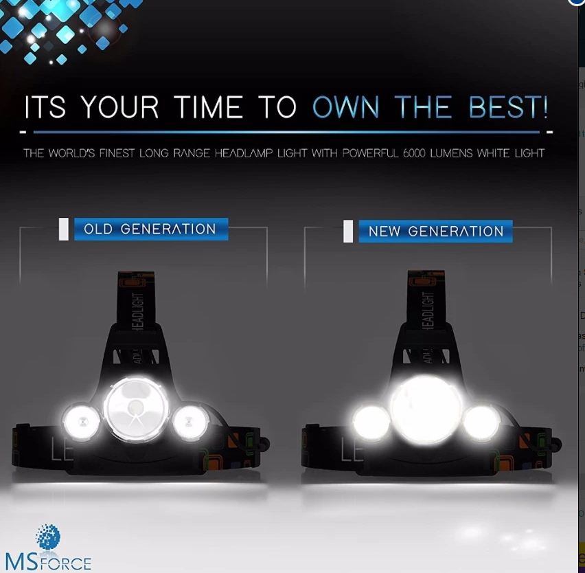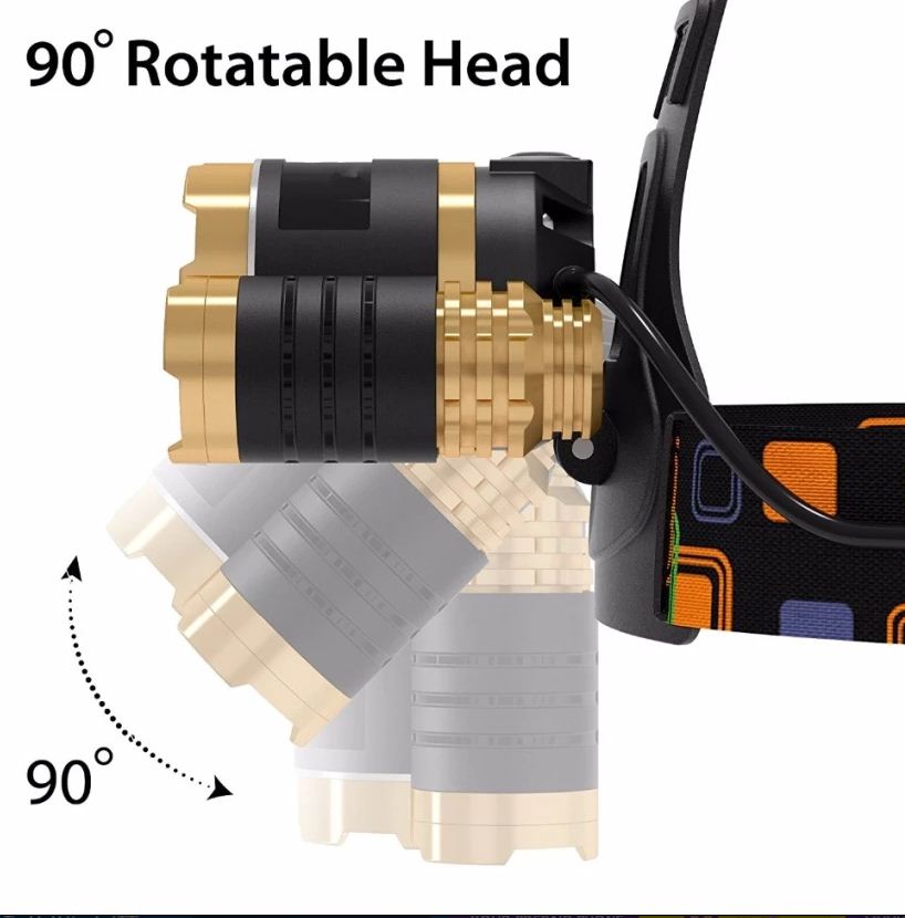 Brightest 3 LED Headlamp 3000 Lumen Rechargeable Headlight