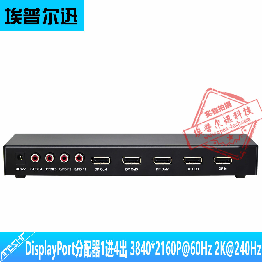 DisplayPort DisplayPort Distributor 1 in 4 out of DP allocator 4 4K@60 Audio separation DP1 score 4