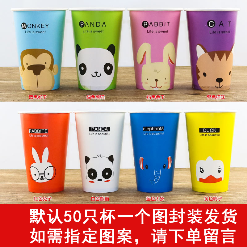 (500 in the whole box) thickened cute cartoon paper cup 500ml panda monkey rabbit animal milk tea soybean milk packaging cup