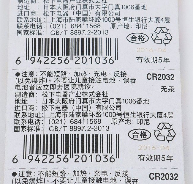 CR2032 button battery car key remote control electronic scale 3V lithium 2032 millet box spot