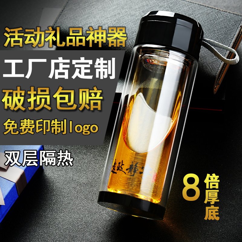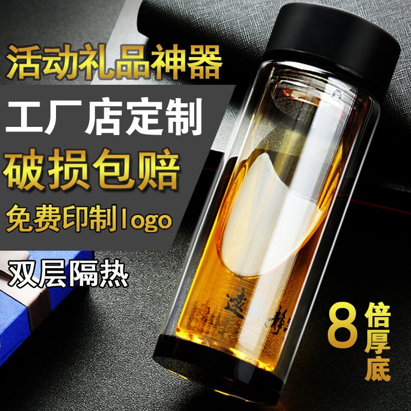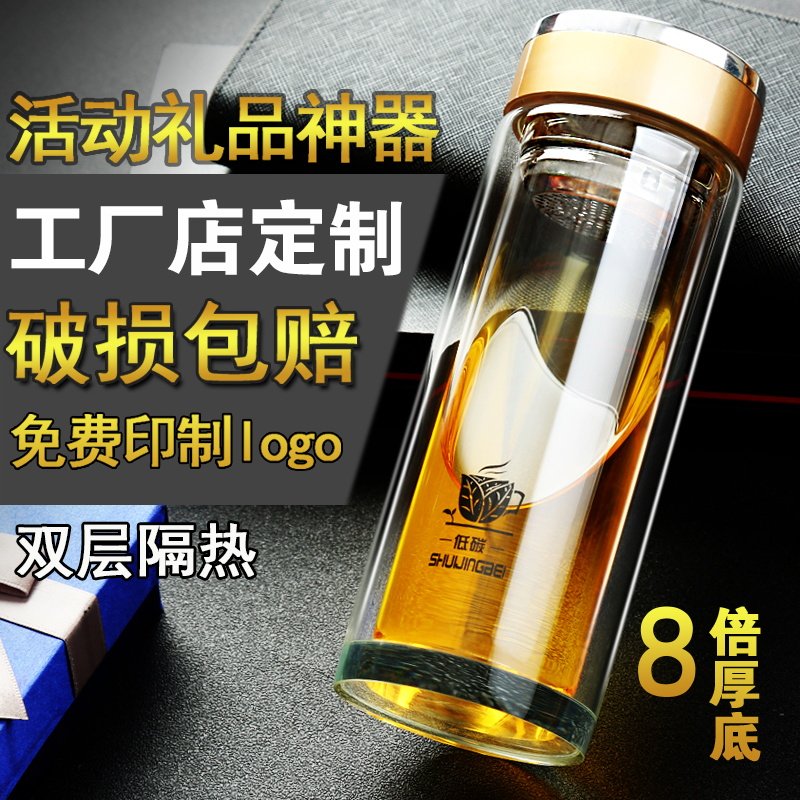 The glass water cup custom LOGO promotion opening small gift printed word double advertising cup wholesale custom