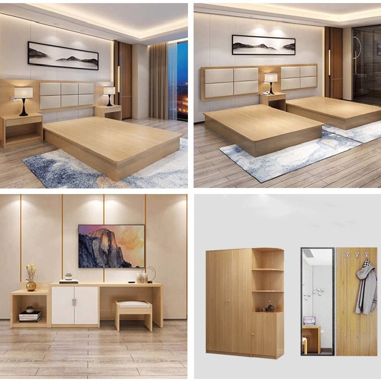 Manufacturer Direct Sale Hotel Bed Guesthouse Furniture single shoulder Shoulder Punctuator Suite Apartment bed head cabinet TV Cabinet Bed Complete custom