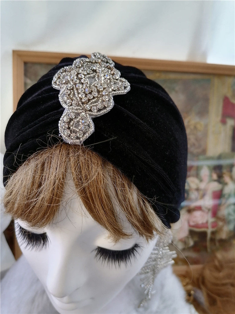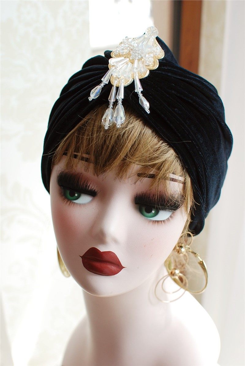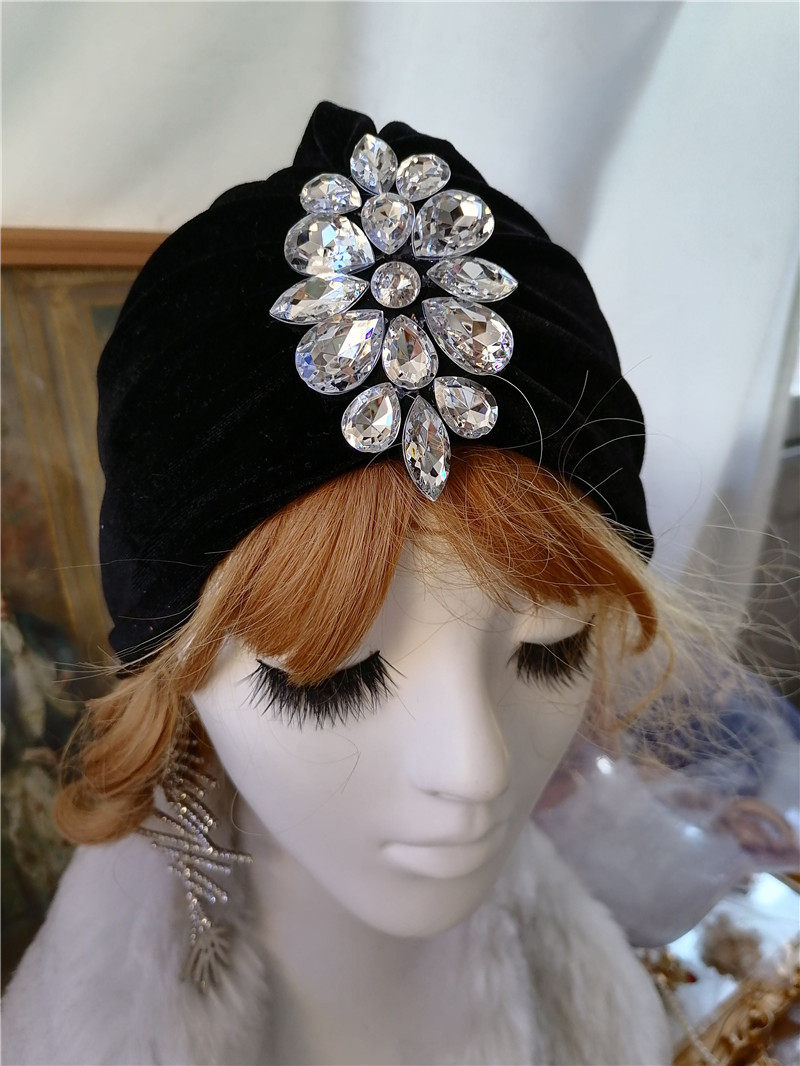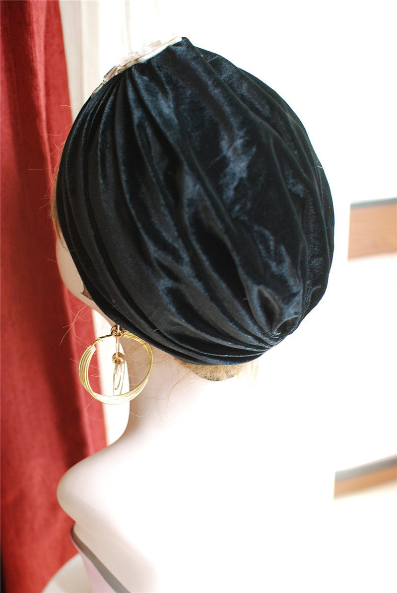 Retro women's hat Baotou imitation pearl decoration women's hat Hui nationality turban hat M sling hat women