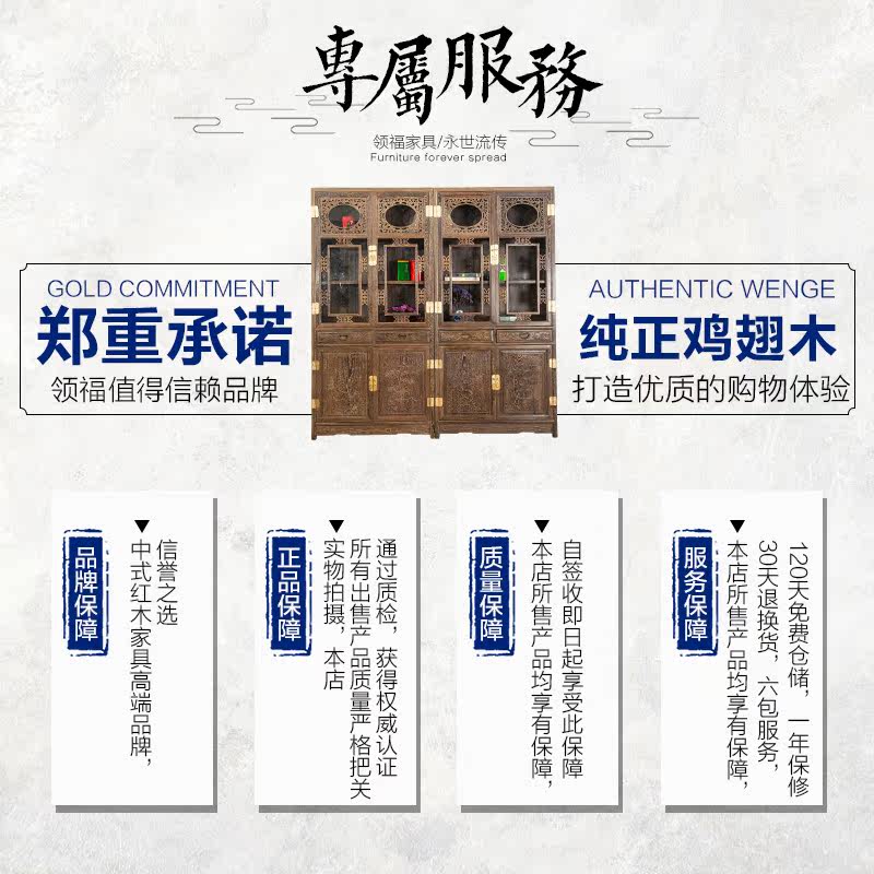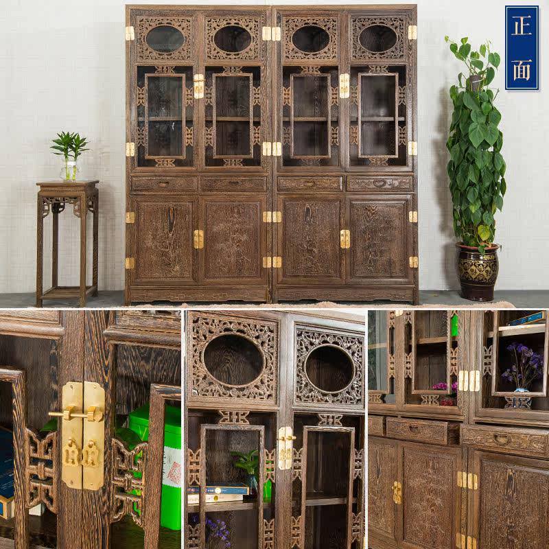 Lingfu mahogany furniture solid wood bookcase locker glass bookcase display cabinet Ming and Qing classical floor cabinet large bookcase