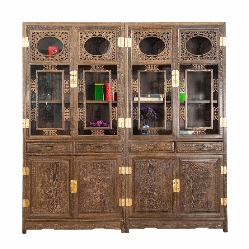A pair of luxurious Ming-style bookcases and a pair of luxurious Ming-style bookcases