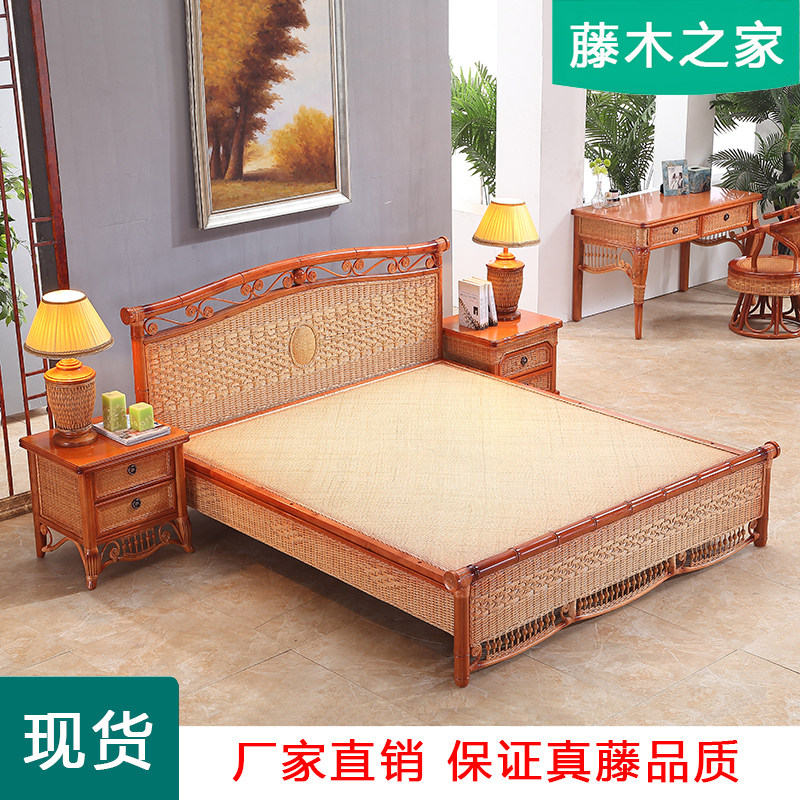 Real vine choreography 1 8M vine art single double man bed rattan bed one meter five rattan wood large bed Indonesia plant vine bed 8507