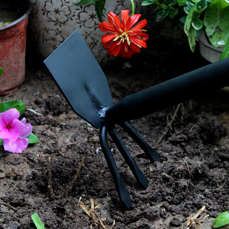 Garden art small hoe household planting vegetable three-tooth hoe outdoor dual-purpose digging multi-functional rake excavation agricultural tools